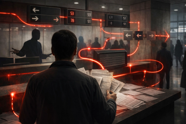 Unclear signage, confusing queue systems, staff who can't explain requirements, and forms that feel like obstacles rather than pathways.